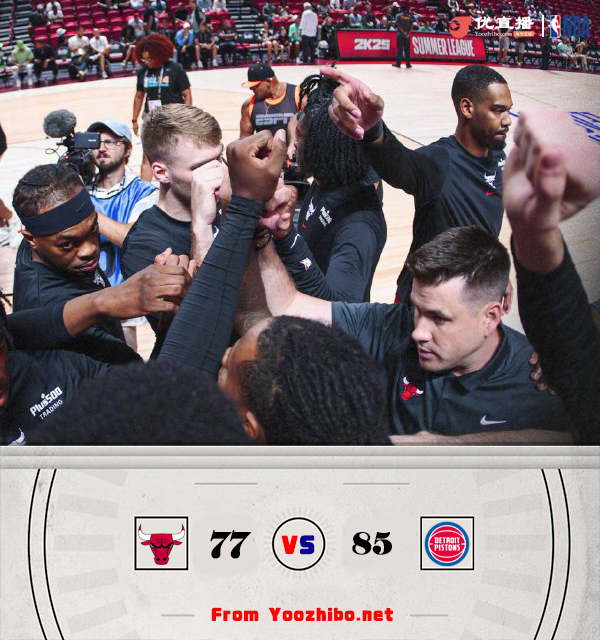 JRS低调看直播讯 7月16日 NBA夏季联赛,活塞主场迎战公牛,公牛在选秀大会上主要摘得11号秀布泽利斯,而活塞则是选中5号秀霍兰、37号秀克林特曼。比赛开始,公牛上来打出8-2不错开局,霍兰扣篮加三分止血,但布泽利斯接连暴扣帮助公牛很快领先到双位数,双方对攻首节公牛领先14分,次节活塞6-0紧急追分,但公牛里突外投迅速回应7-0,萨瑟接连冲击内线加上三分继续追至个位数分差,半场活塞只落后6分。下半场,萨瑟上来连进2记三分一度帮助活塞追平比分,公牛4名球员各自扔进三分迅速止血并重新拉开双位数领先,好在活塞马上小高潮回应,麦考伊压哨三分重新追到差2分,末节活塞上来又是打出9-0直接反超比分,打了3分多钟菲利普斯上篮2+1终于止颓,但霍兰接连反击还是帮助活塞重新领先9分,最终活塞85-77逆转公牛。