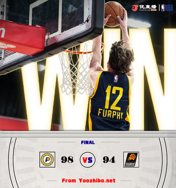 JRS低调看直播 7月17日讯 NBA夏季联赛,步行者对阵太阳。比赛开始,步行者率先发力,内外开花占据主动,太阳不断冲击篮筐拿分打出9-2的攻势迅速反超,次节太阳连中三分扩大领先,步行者频频杀入内线咬住比分,罗迪中投将分差拉开到两位数,半场战罢太阳54-44领先10分。易边再战,太阳命中率骤降,步行者三分3连击迅速迫近比分,沃克三分命中率队反超,末节双方陷入缠斗,比分始终紧咬,关键时刻弗菲飙中三分帮助步行者确立5分优势,太阳苦苦追赶无果。最终,步行者98-94力克太阳。