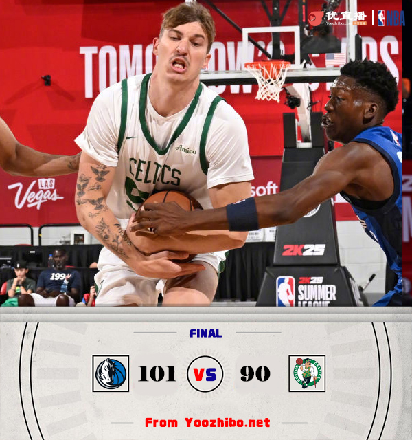 JRS低调看直播 7月20日讯 NBA夏季联赛,独行侠对阵凯尔特人。比赛开始,独行侠率先发力,多点开花打出12-2的攻击波很快取得两位数领先,凯尔特人里突外投努力追赶,次节双方围绕10分分差展开拉锯战,独行侠连投带罚保持优势,凯尔特人连中三分顽强咬住,半场战罢独行侠55-45领先凯尔特人。易边再战,凯尔特人连投带罚拿分,独行侠连中三分保持10分左右优势,末节独行侠稳扎稳打,凯尔特人苦苦追赶无果。最终,独行侠101-90击败凯尔特人。