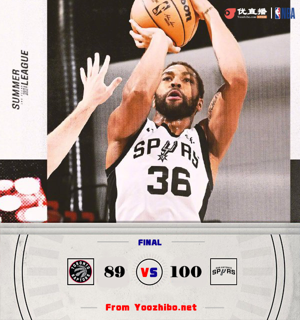 JRS低调看直播7月22日讯 NBA夏季联赛排位赛,猛龙对阵马刺。猛龙上半场依旧表现慢热,马刺以10-0开局,猛龙首节只得到14分,马刺早早建立起10分优势,第二节马刺在进攻端依旧稳定,他们继续将分差拉大。下半场回来猛龙表现有所好转,第三局两队打成平手,最后一节猛龙略微缩小分差但也难挽败局,最终马刺100-89轻松击败猛龙。