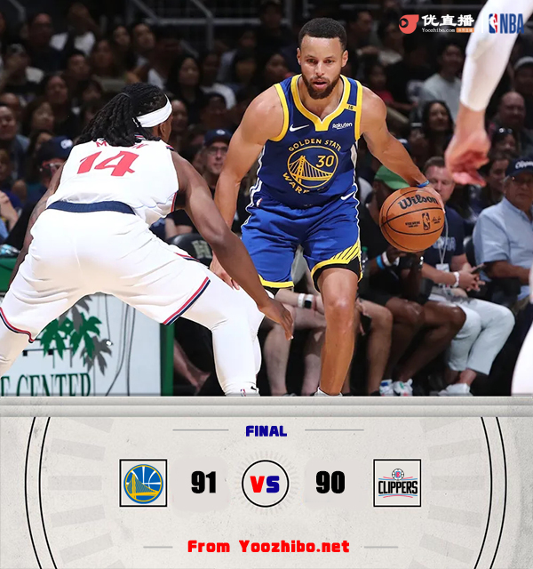 JRS低调看直播10月6日讯 NBA季前赛,勇士对阵快船,库里和哈登均先发出战。开场后哈登和祖巴茨多次形成连线帮助快船取得领先,随后勇士依靠提速反击回敬一波9-0攻势,哈登连续制造三分犯规和打进3+1帮助快船再度领先,勇士依旧靠着反击将比分咬住。第二节快船依旧失误较多,勇士趁机反超比分,哈登站出来连续制造罚球为快船稳住阵脚,穆迪两记三分帮勇士领先结束上半场。下半场回来两队替补阵容都打得比较乱,失误频频,此后双方打得相当胶着,最后时刻沃特斯完美执行战术完成三分压哨绝杀,勇士91-90险胜快船。