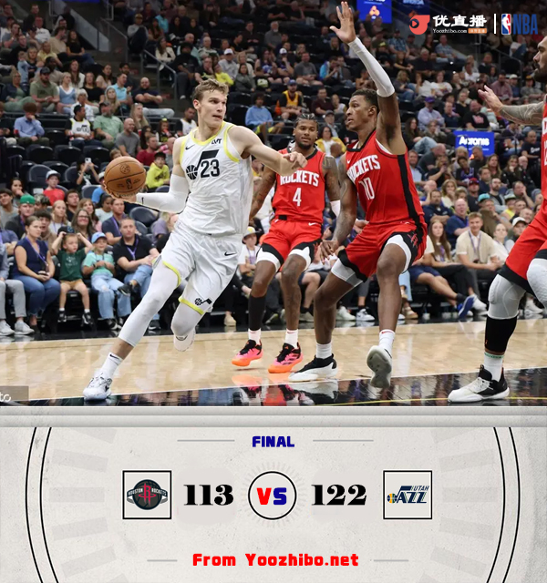 JRS低调看直播10月8日讯 NBA季前赛继续开打,火箭队迎来季前赛第一个对手爵士队。首节开局火箭立足防守迅速接管比赛,他们7分钟里仅丢2分,让爵士期间12投仅命中1球,出色的防守帮助球队取得15-2的攻势占据先机。次节爵士进攻端明显回暖不断蚕食比分,奈何后半段杰伦-格林突然爆发连续命中4记三分,他这一节独砍14分并帮助球队取得13分优势进入下半场。休息归来火箭攻防两端状态骤降,爵士在后半段轰出29-8的攻势一举反超比分,这之后双方逐渐换上替补开启练兵,而爵士也顶住了对手的猛攻。最终,爵士在最多落后19分的情况下逆转火箭拿下比赛。