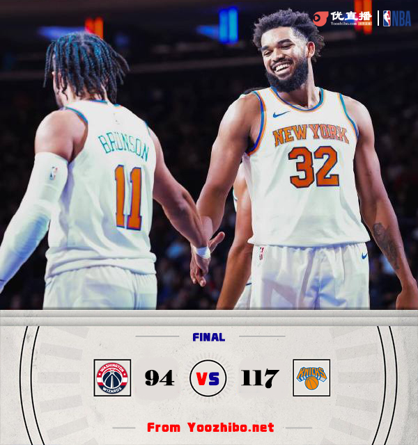 JRS低调看直播10月10日讯 NBA季前赛,尼克斯对阵奇才。比赛开始,尼克斯多点开花打出16-4的开局,此后却突然断电,奇才奋力反击轰出12-0的攻击波反超比分,次节尼克斯火力全开,连续利用防守反击拿分确立优势,奇才进攻端办法不多,半场战罢尼克斯54-39领先15分。易边再战,尼克斯牢牢占据场上主动,多点开花不断扩大领先,末节尼克斯稳扎稳打将优势保持到最后。最终,尼克斯117-94轻取奇才。