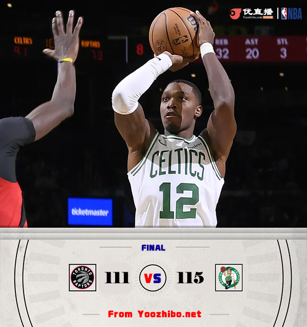 JRS低调看直播10月14日讯 NBA季前赛,凯尔特人今日迎战猛龙,前者已经取得三连胜,后者上场比赛则是不敌奇才,此役凯尔特人主力全部轮休。比赛上来,两队在短时间里保持拉锯,但凯尔特人突然打出一波10-0的小高潮将分差拉开到了两位数,之后的比赛猛龙依旧无法限制对手的攻势,凯尔特人首节轰下41分并建立起21分的领先优势,次节猛龙的进攻依旧没有起色,单节得分未能达到20分,半场结束时凯尔特人领先32分;下半场回来,猛龙的手感终于回暖,分差在末节已经缩小到十分左右,但是凯尔特人没有给他们逆转比赛的机会,最终凯尔特人力克猛龙保持不败。
