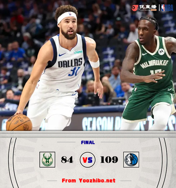 JRS低调看直播10月18日讯 NBA季前赛,独行侠对阵雄鹿。东契奇、字母哥、利拉德都不打,欧文出战。一开场,欧文率先发力,内外开花独得12分,雄鹿连投带罚给出回应,次节克莱突然发力连中三分率队完成12-0的攻击波确立优势,半场战罢独行侠54-38领先雄鹿。下半场,独行侠牢牢占据场上主动,多点开花继续扩大优势,分差一度接近30分。末节独行侠稳扎稳打将优势保持到最后,最终,独行侠109-84轻取雄鹿。
