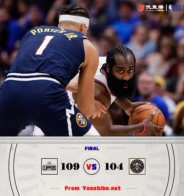 JRS低调看直播10月27日讯 NBA常规赛,掘金主场迎战快船,首场比赛两队都吃到了开门黑。比赛开始,快船上来很是慢热,哈登先串联球队首节就送出7助攻,而掘金依然靠约基奇撑起进攻,双方展开拉锯战,哈登外线开和,首节快船领先8分,次节威少接连误攻,快船连续反击一波14-0直接拉开比分,约基奇连续外线发炮,掘金连续4记三分强势回应,半场掘金追到差6分。下半场,穆雷开始接连远投发挥,约基奇上篮一度追平比分,哈登继续喂饼祖巴茨,双方展开拉锯战,布劳恩反击反超比分,三节掘金反超1分,末节约基奇连续外线发炮砍下11分帮助掘金扩大领先,但鲍威尔里突外投连砍15分强势咬住,比赛进入白热化,鲍威尔关键三分再次追平,掘金关键挑战失败哈登两罚领先,约基奇关键追平罚篮丢一个后绝平三分又不进,最终快船109-104险胜掘金,拿到首胜的同时送对手连败。