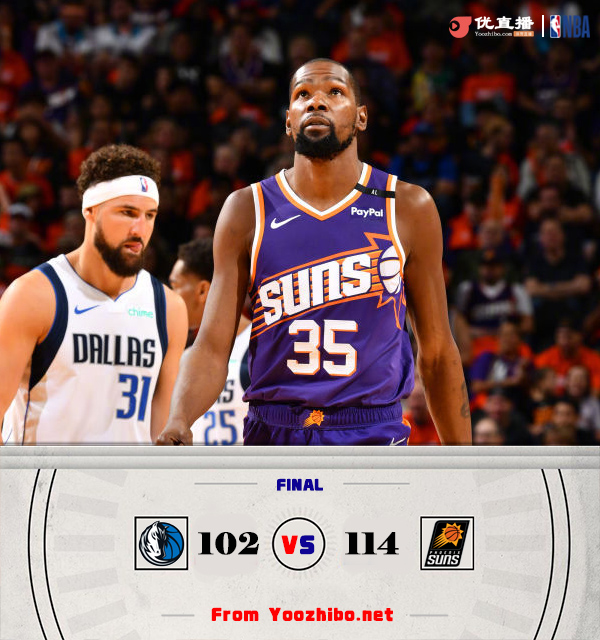 JRS低调看直播10月27日讯 NBA常规赛今日继续进行,太阳迎来赛季第一个主场比赛,对手则是西部劲敌独行侠;本场比赛比尔和阿伦缺席背靠背比赛。首节之争双方状态相当一路拉锯,独行侠这边东欧+克莱的进攻端组合依旧神勇,太阳则更加全面多点开花;次节杜兰特带领替补阵容打出一波11-2的攻势一举确立起两位数领先并奠定半场8分领先。休息归来独行侠依靠开局的10-2一度追至1分,但随后的拉锯战中还是奇差一招,太阳则回敬16-4的攻势拉开两位数分差重新掌控比赛。末节独行侠打得十分别扭分差一直在10分上下徘徊,最后时刻杜兰特和布克连续制造犯规命中罚球杀死比赛。最终,太阳主场击败独行侠拿下比赛。