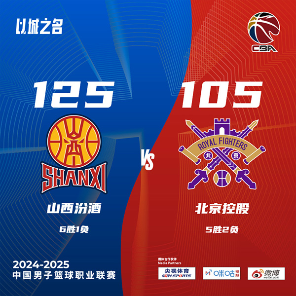 JRS低调看直播10月27日讯 CBA常规赛,山西主场迎战北控,两队开赛以来状态上佳,目前都是5胜1负,而且北控已经拿到3连胜。比赛开始,古德温状态火热接连外线3记三分帮助山西开局,北控外线不开,但接连造杀伤走上罚球线追分,双方展开拉锯战,首节北控仅领先1分,次节迪亚洛开始发挥,贾明儒和巴尔文接连配合,山西一波10-1开始建立主动权,随后北控外线还是不开,半场山西领先14分。下半场,巴尔文接连篮下取分帮助山西扩大领先,陈国豪上来打得很主动助队追分,但山西总能强势回应,三节山西领先到18分,末节双方展开拉锯战,迪亚洛和古德温继续带领球队取分,北控接连追分但分差始终保持在20分左右,最终山西125-105轻取北控,终结对手3连胜。