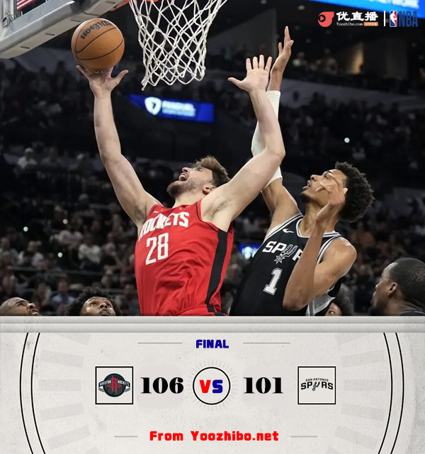 JRS低调看直播10月29日讯 NBA常规赛,马刺今日再战火箭,上场比赛马刺以3分优势险胜火箭,此役瓦塞尔和特雷-琼斯缺战。比赛上来,火箭就打出7-1的开局取得领先,分差也是迅速达到了两位数,整个第一节马刺只拿到了15分,次节两队展开对攻,不过火箭始终保持着十分以上的领先优势,保罗在第二节独得10分,半场结束时火箭领先17分;下半场回来,火箭依旧占据主动,分差也是一度达到了20分,但从第三节后半段开始马刺发起了凶猛的反扑,分差在末节回到了个位数,关键时刻铁了一整场的范弗里特命中杀死比赛的三分,最终火箭力克马刺完成复仇。