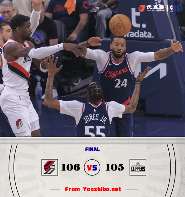 JRS低调看直播10月31日讯 NBA常规赛,开拓者对阵快船。快船最近取得2连胜,开拓者上场输给国王。开场后鲍威尔迅速进入状态以8-0开局,艾顿内线连连砍分帮助开拓者追上比分,随后哈登连中两记三分巩固优势。第二节上来快船多点开花首先将分差拉大,开拓者在艾顿的带领下后来居上打出一波12-0完成反超,快船失误频频,好在他们半场结束前回敬一波7-0迫近比分。下半场回来哈登开始发力连连得分,小琼斯也表现活跃连续在内线得手,快船一举夺回领先。此后开拓者依旧紧追不舍,西蒙斯内突外投将比分追上,最后时刻两队打得十分胶着,防守端连续送出封盖,祖巴茨关键两罚不中,最后哈登发球失误,艾顿完成抢断,最终开拓者106-105险胜快船。