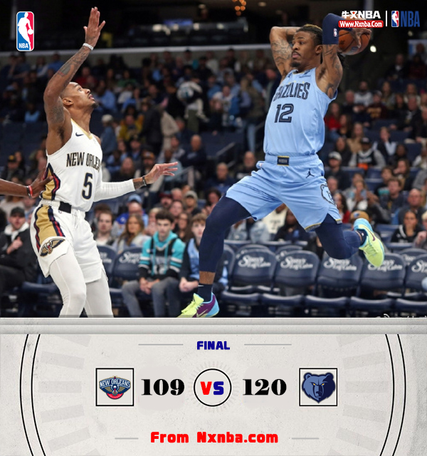 JRS低调看直播11月30日讯 NBA杯,灰熊主场迎战鹈鹕,本场比赛莫兰特复出,英格拉姆因伤缺阵,锡安继续不打。比赛开始,穆雷联手麦科勒姆撑起鹈鹕进攻,莫兰特上来活力十足,接连攻筐回应,随后他又接连送妙传带队建立主动权,首节灰熊领先4分,次节双方命中率短暂下降后展开拉锯战,穆雷有攻有传带队一度反超,但莫兰特连续冲击内线取分,阿尔达马和肯纳德接连3记三分半场稳住11分领先。下半场,墨菲还是没有手感,莫兰特带队守住双位数领先,随后双方展开拉锯战,墨菲压哨三分后鹈鹕还落后10分,末节墨菲助队追分,但莫兰特接连造杀伤取分,斯玛特抛投加三分连得5分稳住局势,灰熊牢牢领先十几分,最终灰熊120-109力克鹈鹕。
