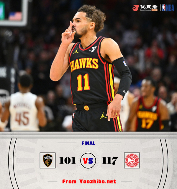 JRS低调看直播讯11月30日讯 NBA杯,老鹰回到主场再战骑士,前天常规赛两队在克利夫兰有过交手,老鹰11分优势获胜,本场比赛勒韦尔复出。比赛开始,双方迅速进入状态,加兰接连三分助队一波10-2小高潮建立主动权,但老鹰马上回应7-0后,亨特里突外投连续砍分,老鹰接连三分首节反超2分,次节米切尔继续不开和,双方进攻端命中率都不高,亨特接连三分再中,老鹰拉开双位数领先,米切尔和加兰连中4记三分止血,半场骑士继续落后2分。下半场,米切尔还是手感一般,老鹰接连杀内线重新拉开双位数领先,勒韦尔接连三分止颓,但老鹰替补打出12-2攻击波一度拉开20分以上领先,末节双方对攻,加兰带队苦苦追分,但老鹰全民皆兵回应,分差始终保持在十几分,最终老鹰117-101再胜骑士。