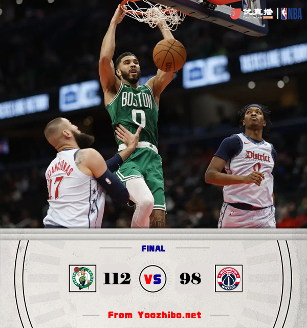 JRS低调看直播讯北京时间12月16日讯 NBA常规赛,凯尔特人客场挑战奇才。凯尔特人20胜5负高居东部第二,奇才3胜20负联盟垫底。上半场,两队开场势均力敌,比分交替领先,凯尔特人一波10-0确立优势,次节奇才仍无起色,普理查德连中三分带队将分差拉开到20分以上,奇才加强防守利用反击苦苦支撑,半场战罢凯尔特人67-52领先奇才。下半场,库利巴利连续拿分带队迫近比分,凯尔特人三分3连击强势回应,末节凯尔特人稳扎稳打保持优势,奇才苦苦追赶无果。最终,凯尔特人112-98轻取奇才,客场过关。