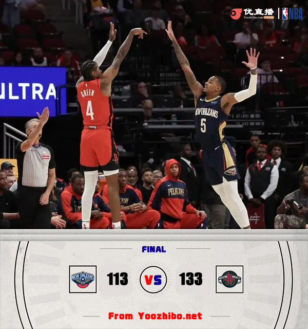 JRS低调看直播讯 北京时间12月20日讯 NBA常规赛,火箭主场迎战鹈鹕,火箭目前17胜9负排在西部第3位,鹈鹕4连败后5胜22负西部垫底,本场比赛锡安和英格拉姆继续缺阵。比赛开始,火箭多点开花上来就发力,外线接连三分打出21-3超级攻击波一举奠定领先,除谢泼德外火箭首节出场球员皆有得分,火箭首节领先14分,次节双方展开对攻战,墨菲和穆雷有攻有传带队追分,但狄龙连中4记三分半场轰下20分给出回应,次节双方打成27平。下半场,杰伦-格林开始发力,接连冲击内线得分迅速上双,火箭顺势拉开20分以上领先,赫伯特-琼斯三分止血,随后杰伦-格林继续冲筐单节砍22分,三节火箭领先到20分,末节麦科勒姆接连造杀伤追分,但杰伦-格林再送暴扣回应,火箭牢牢掌握住十几分领先,最终火箭133-113轻取鹈鹕,送对手5连败。