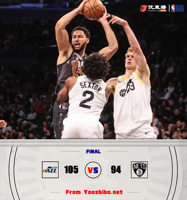 JRS低调看直播讯 北京时间12月22日讯 NBA常规赛继续开打,篮网和爵士迎来一场对决,首节之争双方状态势均力敌,篮网直到进入轮换阶段才以一波7-2的小高潮抢占先机;不过次节轮到爵士在拉锯战中突围,他们末段依靠连续四记三分送出14-2的攻势扭转局面并带着5分优势进入下半场。休息归来篮网状态持续走低,爵士在后半段送出15-6的攻势拉开两位数分差,这之后爵士稳扎稳打将大比分优势保持到最后。最终,爵士轻取篮网拿下比赛。