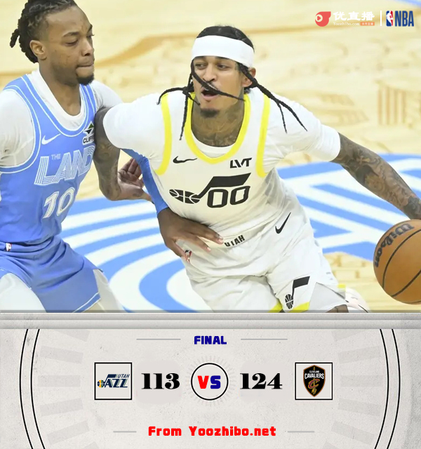 JRS低调看直播讯12月24日讯 NBA常规赛继续进行,联盟领头羊骑士主场迎战爵士,骑士迎来4连胜,目前25胜4负稳居全联盟第一,爵士近期状态不错迎来连胜,但目前仅7胜20负位列西部倒数第二。赛前骑士主场篮筐出现问题开球时间延后,比赛恢复后双方互相试探,莫布里和加兰内外结合联手取分,马尔卡宁外线试投及时回应,首节结束时骑士领先2分,次节回来,双方延续火力继续僵持,爵士多点开花一度反超,加兰飚中压哨三分稳住局势,半场战罢,骑士依然领先4分。易边再战后双方拉开架势大打对攻,马尔卡宁和克拉克森连中三分,米切尔找到感觉外线回应,梅里尔手感滚烫单节贡献14分,三节结束后骑士确立11分优势,末节上来,爵士延续追分势头,双方分差一度只剩1分,骑士回敬15-5攻击波终结悬念,最终骑士124-113力克对手迎来5连胜。