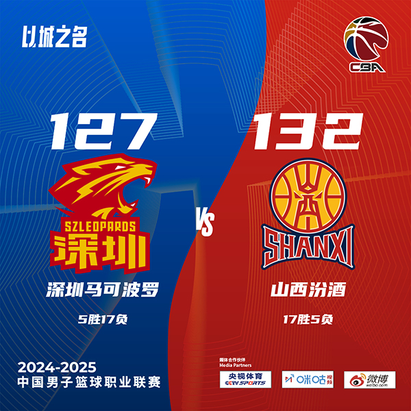 JRS低调看直播讯北京时间12月24日讯 CBA常规赛,深圳主场迎战山西,深圳目前5胜16负排在第18位,山西则是16胜5负高居积分榜次席,本场比赛,山西外援古德温被禁赛。比赛开始,双方上来都迅速进入状态,并展开对攻战,随后威姆斯有攻有传,联手汤普森助队一度领先到双位数,但山西节末发力追到差3分,次节周鹏发力,单节连中3记三分带队重新拉开比分,但张宁站出来外线强势回应3记三分止血,原帅半场结束之前的三分再进直接反超2分。下半场,迪亚洛接连单打帮助山西拉开比分,但周鹏还能扔进三分,随后周鹏三分被莱蒙垫脚受伤下场,但约翰逊接连中远投轰出9-0反超6分,末节双方继续拉锯战,周鹏重新披挂上阵,山西很快犯满,深圳保持领先,迪亚洛违体犯规后深圳领先到8分,但深圳连续失误,张宁一攻一传拖入加时。加时赛,迪亚洛成为主攻点帮助球队反超3分,贾明儒也接连贡献得分,迪亚洛6犯毕业,周鹏关键绝平三分不中,最终山西加时132-127力克深圳。