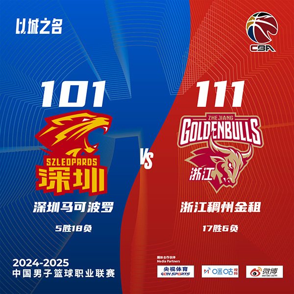 JRS低调看直播讯北京时间12月27日讯 CBA常规赛继续进行,两连败的深圳主场迎战浙江,深圳目前5胜17负位列联赛倒数第三,浙江豪取8连胜,16胜6负攀升至联赛第4位,但核心吴前预计伤停一个月。首节开打后浙江反客为主,内外结合多点开花轰出9-0开局,深圳外援约翰逊里突外投及时止血,双方你来我往比分紧咬,首节结束时浙江领先2分,次节回来,浙江进攻稍有停滞,但深圳无法打出追分高潮,浙江外援约克联手琼斯率队确立优势,半场战罢,浙江继续领先7分。易边再战后深圳进攻依然没有起色,单节仅得到17分,约克火力不减予取予求,三节结束后浙江已经领先14分,末节上来,深圳进攻回暖,但浙江总能给予回应,双方分差始终保持在10分左右,最终浙江111-101击败对手豪取9连胜。