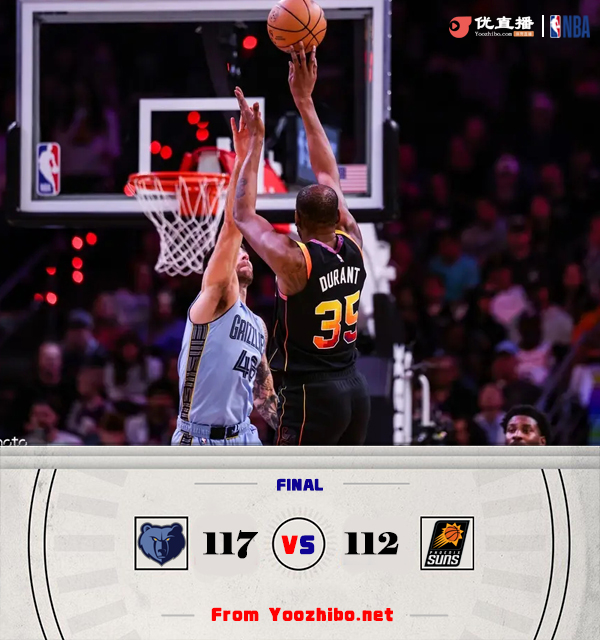 JRS低调看直播1月1日讯 NBA常规赛,灰熊对阵太阳。灰熊上场比赛大败给雷霆,本场比赛莫兰特继续缺阵,太阳最近遭遇2连败,本场比赛布克复出。开场后贾伦-杰克逊连续强攻得手帮助灰熊以11-2开局,虽然太阳进攻逐渐找到感觉,但贾伦-杰克逊完全打爆太阳内线,他首节独得19分带领灰熊建立起10分优势。第二节上来太阳一波7-0的反扑迫近比分,这次换到贝恩站出来,他外线连中三分独得10分帮助灰熊稳住阵脚,两队陷入拉锯战,比尔受伤离场。易边再战,太阳多点开花一路追到只差2分,但随后他们自己连续出现失误又被灰熊将比分拉开,太阳多次努力追分,但始终差一口气未能将比分追上,康查尔跑篮下空位打成2+1,杜兰特强攻不中,最终灰熊117-112送太阳3连败。