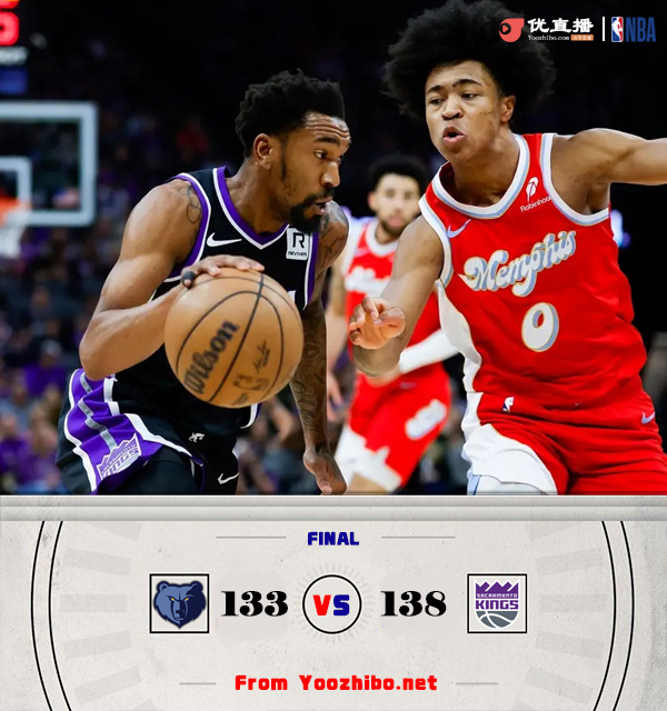 JRS低调看直播1月4日讯 NBA常规赛,灰熊客场挑战国王。灰熊23胜11负,国王15胜19负。上半场,双方开场便大打对攻,国王里突外投拿分,灰熊多点开花给出回应,蒙克和莱尔斯手感火热,国王首节轰下46分领先灰熊14分,次节灰熊火力更猛,韦尔斯和小贾伦-杰克逊联手带队缩小分差,灰熊次节也砍40分,半场战罢国王76-72领先灰熊。易边再战,国王9-0扩大优势,韦尔斯单节11分帮助灰熊咬住比分,末节双方争夺陷入白热化,福克斯击中小皮蓬头部被吹一级恶意犯规,蒙克连得8分带队取得两位数领先,灰熊苦苦追赶无果。最终,国王138-133力克灰熊,主场过关。