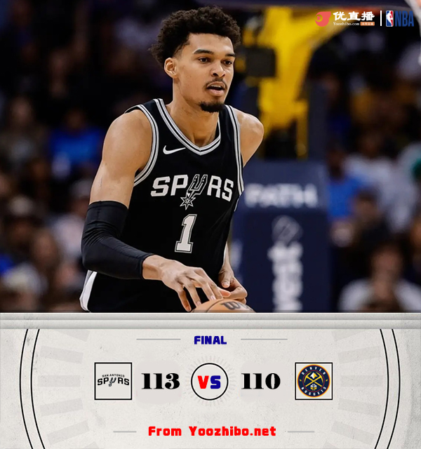 JRS低调看直播讯北京时间1月4日讯 NBA常规赛今日继续开打,掘金今日坐镇主场迎战马刺,这场比赛是双方两天背靠背二番战里的首场对决。首节之争两支球队状态相当都无法阻止对手抢分,约基奇和文班亚马的对决成为焦点也帮助各自球队抢分,马刺开局率先发难短时间内拉开8分优势,但末段掘金轰出连续三记三分又迅速扭转局面;次节双方继续对攻僵持,约基奇和文班亚马两人都在上半场就拿到两双数据,不过文班亚马的表现稍胜一筹也成功帮助到球队,他先是两记三分拉开比分,末段又连续篮下抢分帮助球队拿到8分优势进入下半场。休息归来掘金迅速进入状态送出16-4的攻势追上比分开启拉锯,末节最后时刻简直神仙交手交替抢分多次互换领先,最后时刻马刺犯下大错给了掘金绝杀球权,不过最后时刻约基奇也犯错,文班亚马抢断杀死比赛。最终,马刺力克掘金拿下比赛。