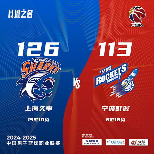 JRS低调看直播讯北京时间1月4日讯 CBA常规赛,上海主场迎战宁波,上海目前11连胜,12胜10负升至积分榜第13位,宁波则是8胜17负排在第15位。比赛开始,双方迅速进入状态,王哲林接连内线强打得分上双,而宁波则是靠外援撑起球队进攻,还命中很多高难度进球,首节上海领先4分,次节上海7-0后一度领先到双位数,随后宁波持续发力回应14-3攻击波反超比分,随后上海再回应11-2小高潮半场领先6分。下半场,双方展开拉锯战,李弘权里突外投连砍8分,上海顺势打出16-1超级攻击波拉开双位数领先,宁波接连三分止血追分,三节上海领先2分,末节李弘权又是接连三分,上海一波12-2重新拉开双位数领先,随后上海牢牢掌握住双位数领先,最终上海126-113力克宁波,豪取12连胜。