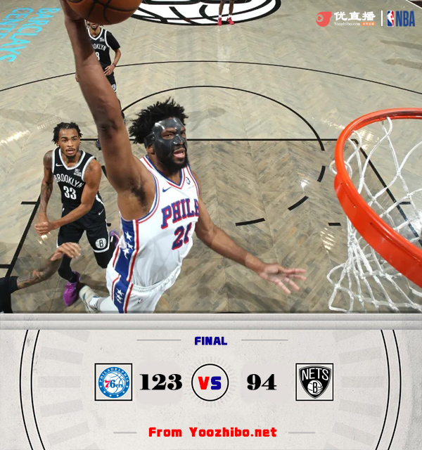 JRS低调看直播1月5日讯 NBA常规赛,篮网主场迎战76人,篮网目前13胜21负排在东部第12位,76人则是13胜19负排名东部第11。比赛开始,篮网上来3记三分轰出11-0开局,但凯莱布-马丁里突外投止血,76人迅速回应13-2攻击波追平比分,随后恩比德里突外投取分帮助76人领先双位数,次节泰瑞斯-马丁中投终于帮助篮网破荒,双方展开拉锯战,凯莱布-马丁接连取分半场弹无虚发助队半场领先17分。下半场,拉塞尔因伤不会回归,恩比德联手马克西带队打出12-2攻击波一举拉开20分以上领先,随后76人接连外线发炮一度拉开30分以上领先,末节双方逐渐换上替补练兵,76人牢牢掌握20分以上领先,最终76人123-94轻取篮网。