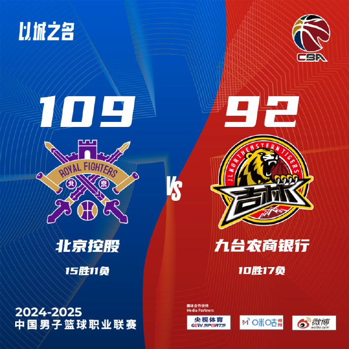 JRS低调看直播1月6日讯 CBA常规赛,北控主场迎战吉林,两支球队上场比赛都遭遇失利,北控是输给广厦,吉林是大败给辽宁。开场后吉林外线手感不错连中三分,北控则是靠着萨林杰在攻防两端的强势发挥取得微弱优势,吉林在外援的带领下紧追不舍。第二节上来吉林多点开花一度反超比分,特莱斯站出来连续得分回应帮助北控重新建立领先,半场结束前北控掀起一波攻势将分差拉大到两位数。易边再战,两队陷入拉锯战,北控多点开花始终保持优势,最后一节吉林进攻没能打出起色只能靠外援拿分,北控多点开花继续将分差拉大,分差来到20分以上,比赛失去悬念,最终北控109-92送给吉林2连败。