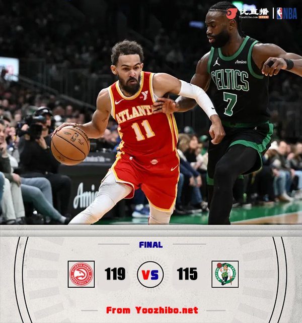JRS低调看直播讯 北京时间1月19日讯 NBA今日继续开打,凯尔特人今日坐镇主场迎战老鹰。首节之争绿军早早进入状态,杰伦-布朗连砍9分帮助球队拿到19-9的完美开局,老鹰开局打得被动也直接导致随后一直被动追分;不过进入第二节双方剧本反转,首节打得被动的老鹰在开局轮换阶段送上15-6的攻势迅速追上比分,博格丹期间命中三分也将自己连续命中三分球场次扩大至111场;绿军方面则落入被动次节仅得15分并丢掉领先带着4分劣势进入下半场。休息归来老鹰状态如同过山车一般又开始回落,绿军则在落后9分的被动局面下送出18-4的攻势扭转局势;末节决胜时刻绿军虽然手握领先但优势不大埋下隐患,最后时刻塔图姆还投丢了关键罚球,特雷-杨则在随后两罚全中将比赛拖入加时。加时赛双方交替拿分几次互换领先,末段双方更是弹无虚发各种神仙球,不过最后时刻布朗先是被帽,随后又出现失误,老鹰则依靠奥孔武最后的进攻篮板罚球奠定胜局。最终,老鹰加时力克凯尔特人拿下比赛。