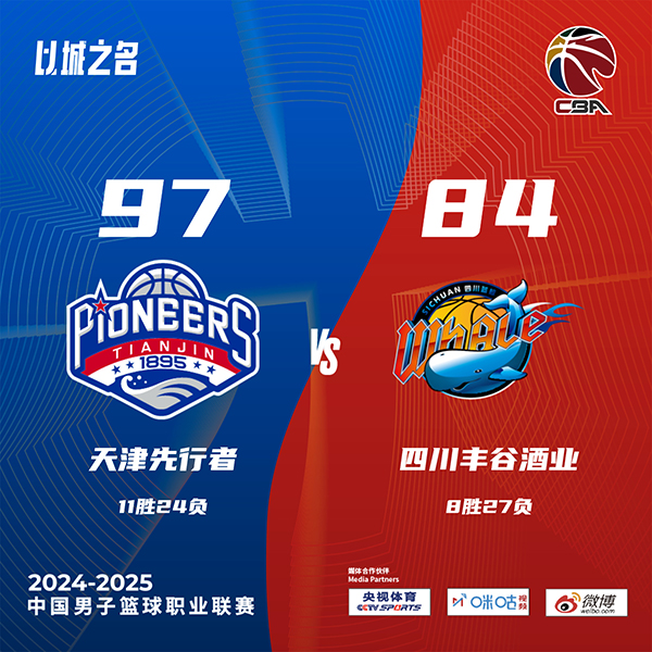 JRS低调看直播讯 北京时间1月25日讯 CBA常规赛继续进行,天津主场迎战四川,天津目前10胜24负位列联赛第15位,四川苦吞5连败,8胜26负排在第16位。首节开打后天津率先发力连续取分,亨特和马里奇短暂止血,无奈林庭谦联手拉维特接连打进,首节结束时天津领先8分,次节回来,双方进攻火力放缓,拉维特和林庭谦连投带罚继续取分,半场战罢,天津已经领先14分。易边再战后四川逐渐找到节奏,亨特和马里奇连投带传带动全队,四川不断迫近比分,天津连造杀伤及时回应,三节结束后天津依然领先10分,末节上来,四川进攻乏力追分无望,天津乘胜追击终结悬念,最终天津97-84击败四川送对手6连败。