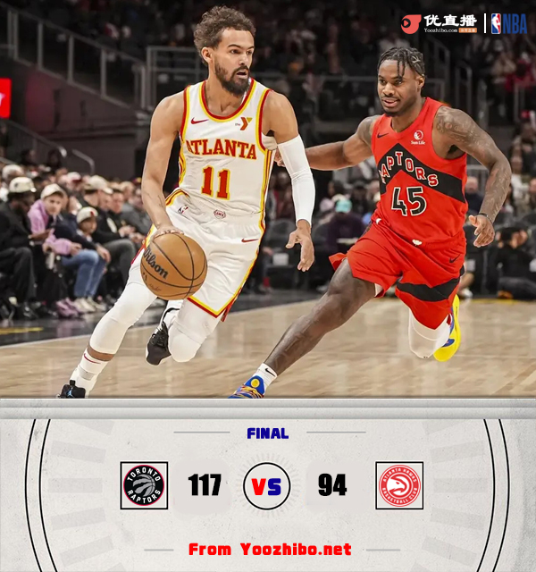 JRS低调看直播讯 北京时间1月26日讯 NBA常规赛,猛龙对阵老鹰,猛龙最近取得2连胜,老鹰遭遇3连败。比赛开始后老鹰多点开花率先打出攻势,奥孔武表现活跃接连拿分,老鹰一度领先到12分,随后巴恩斯站出来为猛龙缩小分差。第二节猛龙连续打出反击将比分反超,老鹰虽然努力追分,但巴雷特和巴恩斯总能及时回应,半场过后,猛龙反超老鹰7分。下半场回来,猛龙在巴恩斯和巴雷特的带领下依旧打得有声有色,特雷-杨手感不佳,老鹰的轮换阵容进攻表现也不行,反倒是布歇替补表现相当神勇,猛龙继续巩固领先优势。最后一节老鹰依旧失误较多未能掀起有效反扑,猛龙将分差拉大到20分以上,比赛失去悬念,最终猛龙117-94大胜老鹰取得3连胜,老鹰遭遇4连败。