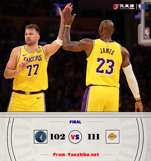 JRS低调看直播讯2月28日讯 NBA常规赛,湖人主场迎战森林狼。湖人3连胜后35胜21负西部第5位,森林狼32胜27负西部第8位。本场比赛,迪文岑佐迎来复出,戈贝尔和兰德尔继续不打。比赛开始,东契奇上来又攻又传带队打出11-3开局,森林狼依靠外线止血,但东契奇里突外投继续得分,詹姆斯也接连外线发炮,二人皆得分上双,首节湖人就建立16分领先,次节湖人外线多点开花连中4记三分直接领先到20分以上,森林狼连续攻击内线8-1止血,爱德华兹和香农接连三分半场追到差11分。下半场,湖人上来10-2再次拉开比分,爱德华兹带队迅速回应10-3止血后再吃T被驱逐,八村塁也伤退,森林狼接连三分能回应,但詹姆斯攻防发力助湖人稳住11分领先,末节香农继续奇兵角色,森林狼轰出11-0一度追到差3分,东契奇强突2+0后神奇压哨三分稳住局势,最终湖人拒绝逆转,111-102力克森林狼,拿到4连胜。