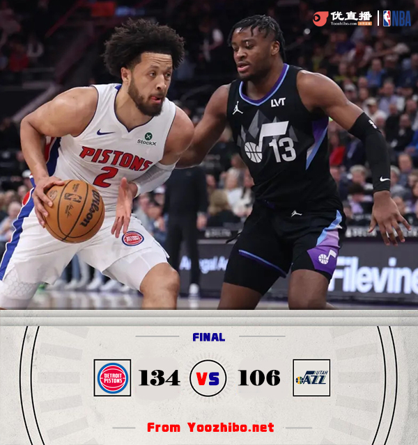 JRS低调看直播讯北京时间3月4日讯 NBA常规赛,活塞对阵爵士,活塞上场比赛轻取篮网稳居东部第六,爵士继续在西部垫底,上场输给鹈鹕。刚开场爵士在进攻端还打得有声有色,一度和活塞打得有来有回,但第一节后半段爵士失误开始增多,活塞多点开花迅速拉开比分,第一节爵士出现10次失误。第二节回来两队都先是选择冲击内线拿分,康宁汉姆得分组织一把抓,带领活塞再度掀起一波攻势将分差拉大到20分以上。易边再战,活塞在康宁汉姆的带领下攻势依旧不减,爵士也是多点开花紧追不舍。最后一节,塞克斯顿和菲利波夫斯基联手继续发起反扑,康宁汉姆和奥萨尔重新登场后帮助活塞再度将分差拉大到20分开外,比赛彻底失去悬念,最终活塞134-106大胜拿下爵士取得2连胜,爵士遭遇2连败。