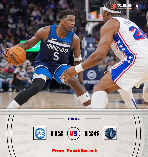 JRS低调看直播讯北京时间3月5日讯 NBA常规赛,森林狼主场迎战76人。森林狼目前33胜29负西部第9,76人21胜39负东部第12。本场比赛,马克西不打,恩比德和戈贝尔继续缺阵。比赛开始,双方上来都很是慢热,打了半节都没有得分上双,随后格莱姆斯联手朗尼-沃克带队取得领先,爱德华兹接连造杀伤回应,迪文岑佐三分帮助森林狼领先2分,次节森林狼上来接连三分一波13-4领先到双位数,格莱姆斯里突外投连砍7分止血,但爱德华兹接连三分还能回应,半场森林狼还领先4分。下半场,双方展开拉锯战,乌布雷接连突破追分,但森林狼能给出回应,康利压哨三分还领先3分,末节森林狼外线多点开花,连中5记三分再次领先到双位数,76人追分森林狼总能回应保持住十几分领先,双方换上替补练兵,最终森林狼力克76人。