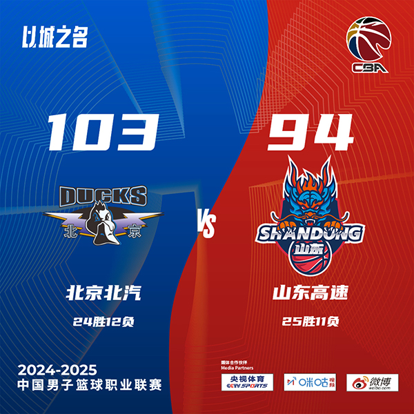 JRS低调看直播讯北京时间3月5日讯 CBA常规赛第三阶段战火重燃,北京主场迎战山东,北京目前23胜12负位列联赛第5,山东25胜10负排在第3。首节开打后双方稍显慢热,周琦连投带罚不断杀伤,山东双外援克里斯和盖利联手回应,山东中段开始发力后来居上,首节结束时山东领先7分,次节回来,山东进攻出现停滞,曾凡博突然爆发单节贡献13分,率领北京一举反超,半场战罢,北京反超3分。易边再战后山东进攻依然没有起色,曾凡博予取予求率队拉开比分,三节结束后北京继续领先7分,末节上来,陶汉林跳投打进后山东一度反超,北京内外结合迅速回敬12-2攻击波,山东追分未果,最终北京103-94力克对手。
