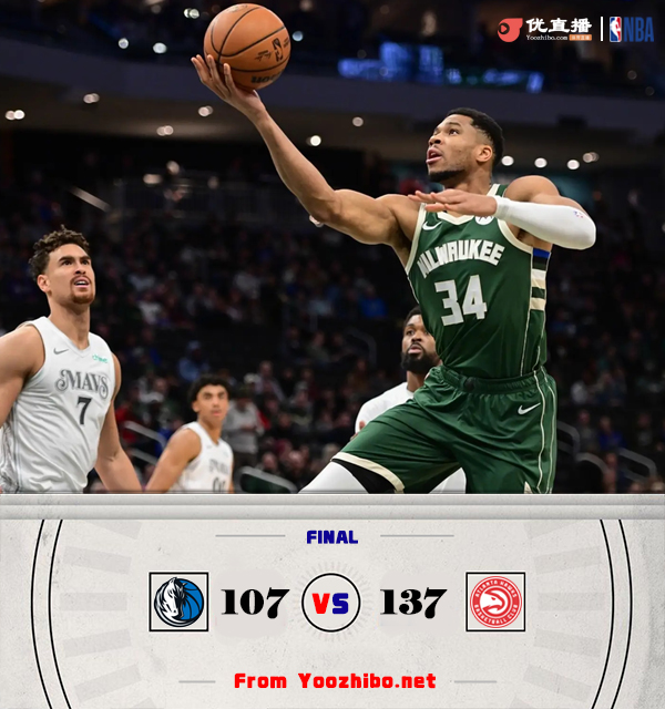 JRS低调看直播讯北京时间3月6日讯 NBA常规赛,独行侠对阵雄鹿,独行侠最近遭遇2连败,目前球队伤病情况严重,雄鹿则是状态不错取得3连胜。比赛刚开始独行侠多点开花还能跟雄鹿僵持咬住比分,克莱手感火热,利拉德和字母哥上来就展现出不错状态,首节末段利拉德又是接连开火帮助雄鹿将分差拉大到两位数。第二节克里斯蒂上来帮助球队接连追分,但字母哥和利拉德帮助雄鹿再度拉开比分。易边再战,字母哥大杀四方,虽然马绍尔接连为独行侠拿分,但独行侠完全挡不住雄鹿的进攻,场上分差被继续拉大,分差一度超过30分。比赛失去悬念,第四节独行侠还是主要轮换阵容出战,雄鹿派出替补练兵,最终雄鹿137-107大胜独行侠取得4连胜,独行侠遭遇3连败。