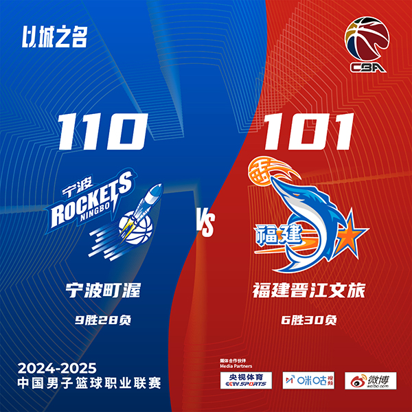JRS低调看直播讯北京时间3月7日讯 CBA常规赛继续进行,宁波主场迎战福建,赛前福建6胜29负排名垫底,宁波8胜28负排在联赛第16位。此役一上来双方迅速找到节奏,宁波外援马奇无人可挡单节独得13分,宁鸿宇外线续上火力,路易斯-金率队短暂回应,首节结束时宁波领先6分,次节回来,邹阳里突外投率队一度反超,但中段福建进攻再度断电,宁波轰出15-0攻击波夺回优势,半场战罢,宁波保持4分优势。短暂休整后邹阳上篮福建再度反超,但宁波双外援诺伊和马奇强势回应,宁波领先3分进入末节,末节决战,双方陷入鏖战,宁波顶住对手反扑,最终宁波110-101力克福建终结12连败。