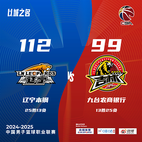 JRS低调看直播讯北京时间3月9日讯 CBA常规赛迎来东北德比,辽宁主场迎战吉林,辽宁目前24胜13负位列联赛第8,吉林13胜24负排在第14位。首节开打后两队你来我往比分紧咬,琼斯连投带罚不断取分,赵继伟联手韦伯外线回应,中段辽宁开始发力,首节结束时辽宁领先4分,次节回来,辽宁进攻突然陷入停滞,琼斯无人可挡单节狂揽17分,半场战罢,吉林反超领先7分。易边再战后辽宁突然发力一波10-2夺回优势,双方陷入鏖战比分紧咬,辽宁领先4分进入末节,末节决战,吉林连中三分拉回悬念,威尔斯内外结合稳住局势,赵继伟再中三分杀死比赛,最终辽宁112-99力克对手。