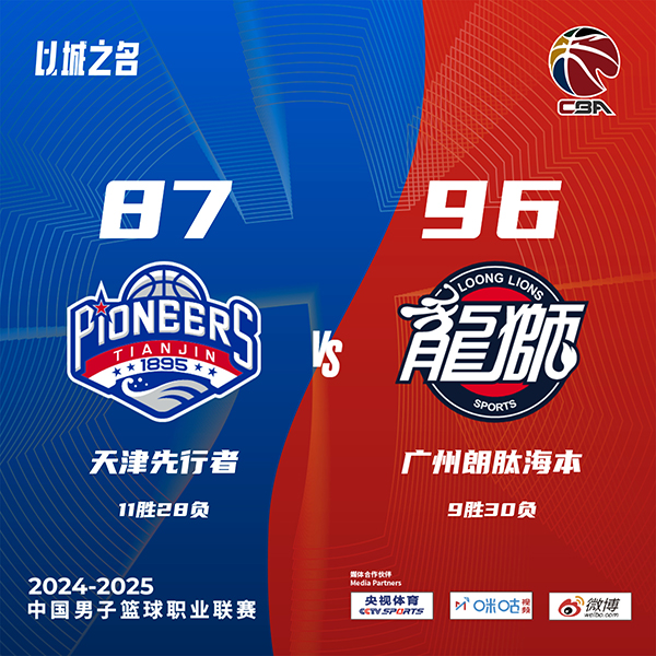 JRS低调看直播讯北京时间3月12日讯 CBA常规赛,天津最近遭遇3连败,广州上场比赛击败福建。开场后天津率先进入状态以12-2开局,广州在外线带领下逐渐找到节奏,天津内线占据优势保持领先。第二节上来天津外线手感冰凉,三分频频打铁,广州掀起一波攻势在半场结束时将比分反超。易边再战,两队依旧打得十分胶着,林庭谦和大卫-詹姆斯连中两记三分夺回领先,天津趁势追击将分差拉大。第四节袁照耀和富兰克林一阵三分雨下帮助广州再度反超比分,此后虽然天津努力追分,但于米提和富兰克林帮助广州巩固优势,最终广州96-87送给天津4连败。