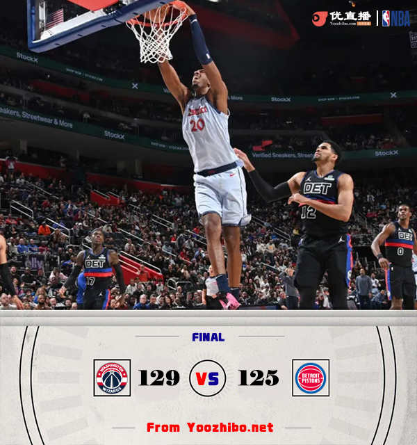 JRS低调看直播讯北京时间3月14日讯 NBA常规赛,奇才对阵活塞,奇才2连败继续在东部垫底,活塞则是拿到2连胜继续占据东部第六。开场后康宁汉姆和哈里斯联手帮助活塞以11-3开局,米德尔顿状态不错接连砍分帮助奇才追上比分,随后奇才连中三分完成反超,活塞也在外线及时回应,首节两队打成平手。第二节依旧是活塞率先发力,奇才后来居上完成反超,康宁汉姆重新登场后为活塞止血,两队再度陷入拉锯战。易边再战,奇才上来外线一阵三分雨将分差拉大到两位数,康宁汉姆再次站出来带领活塞打出攻势,活塞以一波11-0的攻击波反超比分结束第三节。最后一节奇才多点开花再度打出气势,两队陷入僵持,康宁汉姆连续拿分,乔治则两记三分回应,萨尔顺下完成暴扣,此后活塞进攻未果,奇才罚球巩固优势,最终奇才力克活塞。
