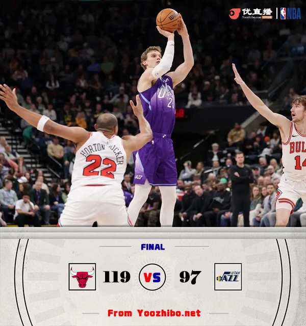 JRS低调看直播讯北京时间3月18日讯 NBA常规赛,公牛对阵爵士,公牛上场比赛惜败火箭依旧在东部第十,爵士最近遭遇9连败垫底西部。开场后公牛多点开花以10-0开局,爵士连续进攻内线得手缩小分差,不过公牛又是打出一波攻势将分差拉大到两位数。第二节上来爵士内外开花一波14-2的攻势完成反超,随后两队陷入拉锯战,依靠琼斯的一记三分,公牛上半场领先1分。易边再战,布泽利斯和琼斯联手打出一波小高潮帮助公牛再度领先,爵士外线手感不佳还是依靠冲击内线追分,公牛在进攻端表现稳定,场上分差一直维持在两位数,第四节爵士一度掀起反扑追到只差4分,但接下来爵士进攻突然断电,公牛回应12-0的攻势再度将比分拉开,最终公牛111-97送给爵士10连败。