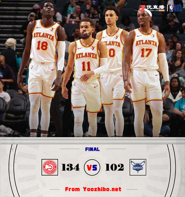 JRS低调看直播讯北京时间3月19日讯 NBA常规赛,老鹰对阵黄蜂,老鹰最近2连败排东部第七,黄蜂上场比赛惨败给快船,鲍尔和布里奇斯本场比赛缺阵。比赛开始后老鹰就在防守端展现出不错的强度,多次形成抢断和封盖,奥孔武连中三记三分帮助老鹰建立优势。杰弗里斯找到手感连续拿分回应,黄蜂一路追到只差1分。第二节老鹰率先发力又将分差拉大到两位数,黄蜂虽然期间多次掀起反扑,但老鹰外线手感不错多次回应三分,半场结束前老鹰又是连连打出反击巩固优势。易边再战,老鹰上来一阵三分雨直接将分差拉大到20分以上,其中里萨谢独中三元。此后黄蜂也无力再缩小分差,老鹰末节依旧轻松掌控场上局面,迪亚巴特受伤,最终老鹰134-102大胜黄蜂结束2连败,黄蜂连遭两场大败。