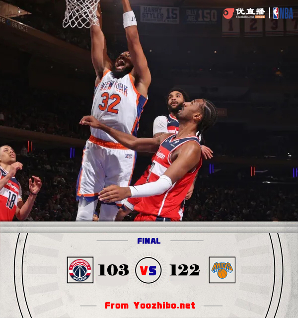JRS低调看直播讯北京时间3月23日讯 NBA常规赛今日继续开打,尼克斯坐镇主场迎战奇才,两支球队近期客场比赛都很多,双方过去10场比赛都是2主8客赛程艰苦,而作为东部第三和东部倒数第一的对决,两队过去10场比赛都是4胜6负。首节之争尼克斯还是展现出了完胜对手的实力,他们开局短暂拉锯后依靠替补阵容的暴走拿分送上一波17-7的攻势一举拉开两位数分差;次节尼克斯外线开火,他们节中曾5个拿分回合都是来自于外线三分,这一节尼克斯净胜15分的同时拿到25分的领先结束上半场。休息归来尼克斯继续占优分差一度拉大至33分,不过后半段奇才以普尔为首飚进6记三分突然起势,末节又以12-0开局,跨节合计12分钟左右的时间里他们将原本33分的巨大劣势缩小至4分;不过尼克斯最后时刻及时苏醒并用一波11-2的攻势重新拉开两位数分差。最终,尼克斯主场击退奇才拿下比赛。