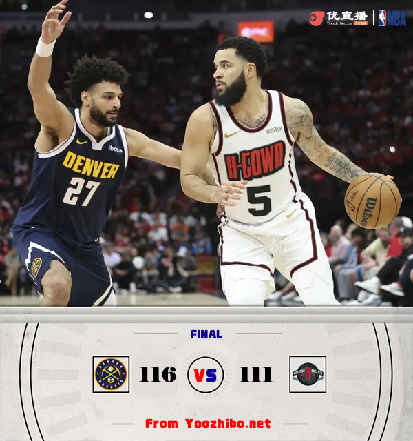JRS低调看直播讯 北京时间3月24日讯 NBA常规赛激战正酣,9连胜的火箭主场迎战掘金,掘金遭遇连败后战绩来到44胜27负,暂列西部第三,火箭领先掘金两个胜场,46胜25负稳居西部第二。此役约基奇继续因伤休战。首节开打后掘金手感冰凉,主场作战的火箭轰出7-0开局,穆雷连投带罚及时止血,首节结束时两队战成27平,次节回来,双方你来我往继续僵持,格林里突外投率队取分,掘金多点开花总能给予回应,半场战罢,双方57平难分伯仲。易边再战后火箭进攻出现停滞,穆雷连中三分单节狂揽15分,率队连续打出小高潮拉开比分,三节结束后掘金已经领先17分,末节上来,决胜时刻火箭一波7-2拉回悬念,穆雷和小波特连中罚球,申京和格林连丢罚球反扑未果,最终掘金116-111击败对手终结连败,同时终结火箭9连胜。