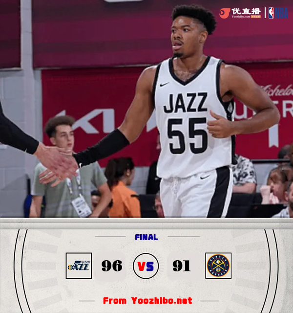 JRS低调看直播讯 7月13日 NBA夏季联赛继续进行,掘金和爵士两支西部球队正面对话,爵士阵中阿巴基和朱赞领衔出战,掘金这边,今年的29号秀斯特劳瑟引人关注。比赛开打后爵士连续冲击内线取分,掘金外线给予回应,中段爵士连中三分后拉开比分,末段掘金进攻依然滞涩,爵士延续火力继续扩大优势,首节结束时爵士已经领先14分,次节回来,爵士开局一波7-1后双方分差已经来到20分,随后掘金进攻稍有回暖,但爵士总能给予回应,半场战罢,爵士保持20分优势。易边再战后掘金继续追分,内外结合的他们不断打出得分高潮蚕食分差,阿尔曼-富兰克林压哨打进,三节结束后掘金仍然落后11分,末节上来,两队继续鏖战,双方外线火热对飚,爵士始终保持两位数左右优势,掘金逆转未果,最终爵士96-91力克掘金。