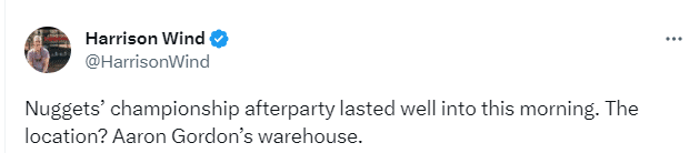 整整47年,掘金终于夺得队史第一座总冠军奖杯,夺冠后,掘金全队以及丹佛整座城市都陷入狂欢派对之中,这属于他们的不眠之夜。不过据报道,掘金夺冠后在距离掘金球馆一英里之外发生大规模枪击事件,事件发生在当地凌晨,造成10人受伤。