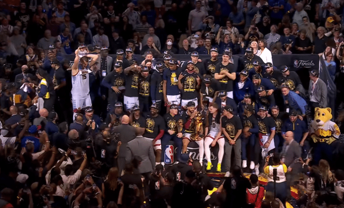 掘金更衣室狂欢曝光:夺冠后全队狂喷香槟庆祝 约基奇直接对瓶吹