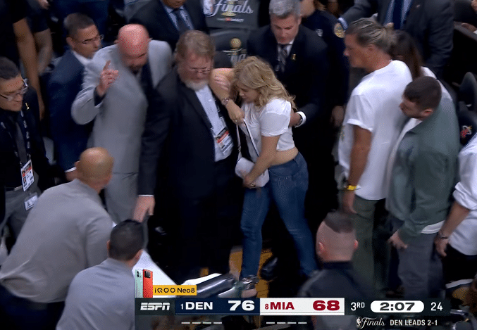 总决赛G4连遭意外:女球迷被担架抬走 热火吉祥物被揍进急诊室