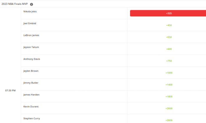 总决赛MVP最新赔率:詹姆斯第三哈登超杜库 约基奇力压恩比德居首