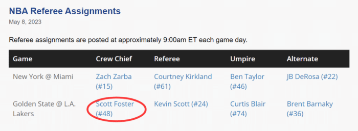 湖勇G4主裁判是福斯特!本赛季执哨湖人4胜1负 吹勇士比赛1胜3负